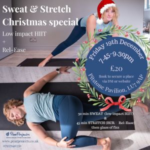 Join me in person for a wonderful event made up of a low impact but sweaty HIIT session, followed by a gentle and slow Holistic Core Restore® REL-Ease stretch & relax, all rounded off with a festive glass of fizz.